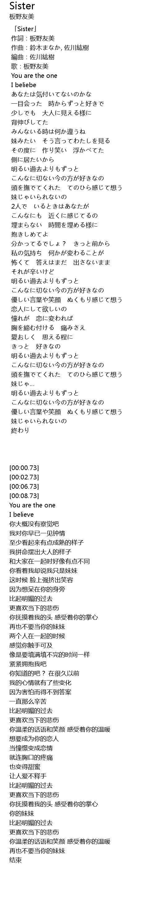 | [00:00.73] | 「Sister」 |