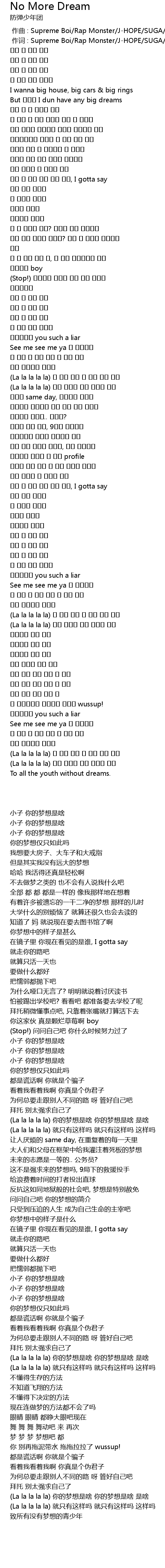 | [00:01.00] | zuo ci : Supreme Boi Rap Monster JHOPE SUGA fang shi he Pdogg |