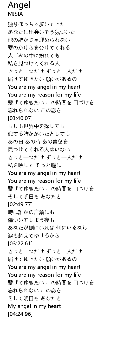 | [04:18.36] | My angel in my heart |