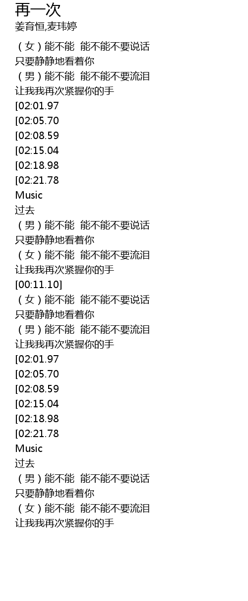 | [00:17.78] | (女)能不能 能不能不要说话 |