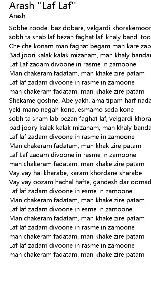 Che che konam man faghat begam man kare zaboone derazemoone |