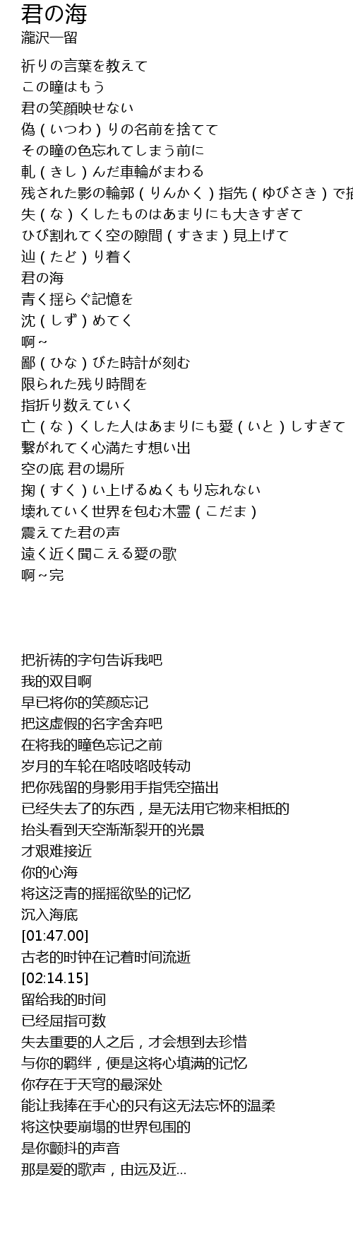 | [01:35.24] | 君の海 |