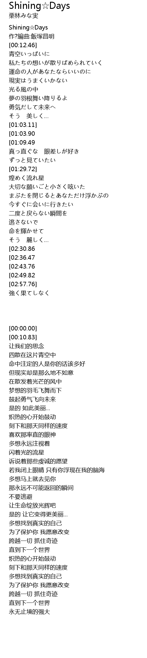 | [00:00.00] | Shining☆Days |