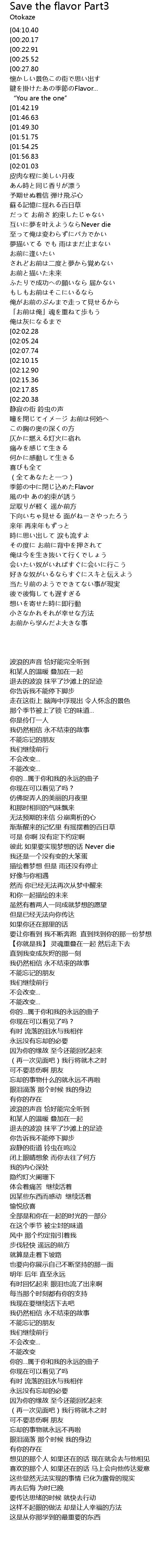 | [02:53.74] | 季節の中に閉じ込めたFlavor |