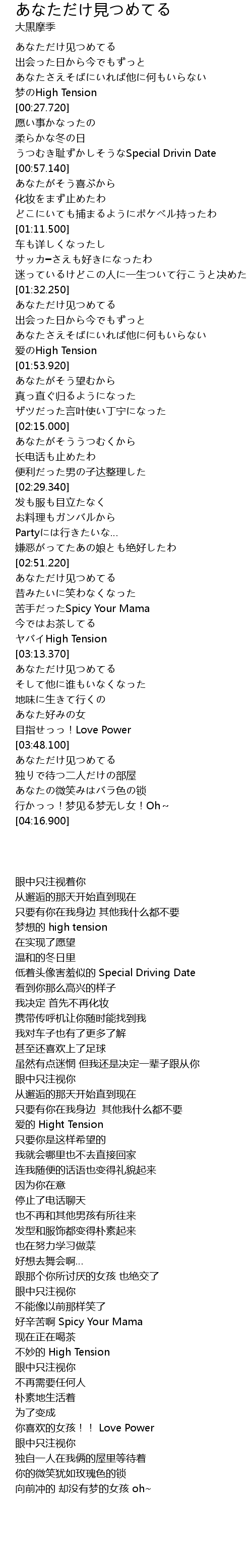 | [03:51.990] | あなただけ见つめてる |
