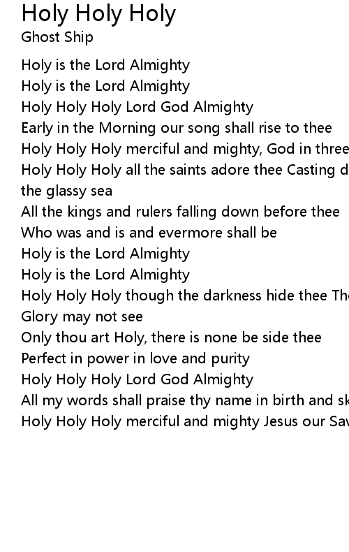 Holy Holy Holy merciful and mighty, God in three persons blessed trinity |
