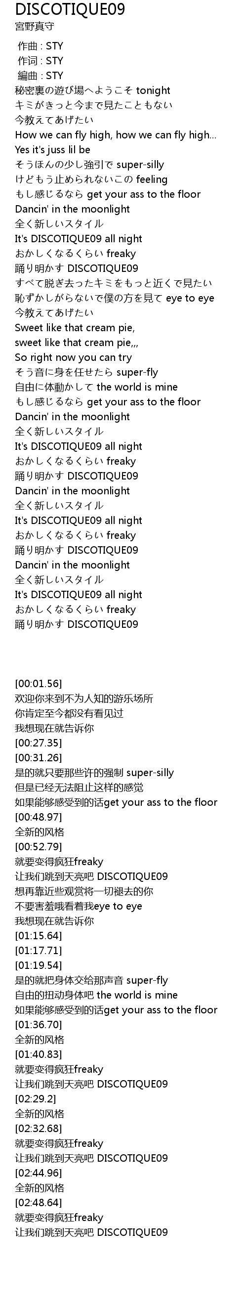 | [02:32.68] | It's DISCOTIQUE09 all night |