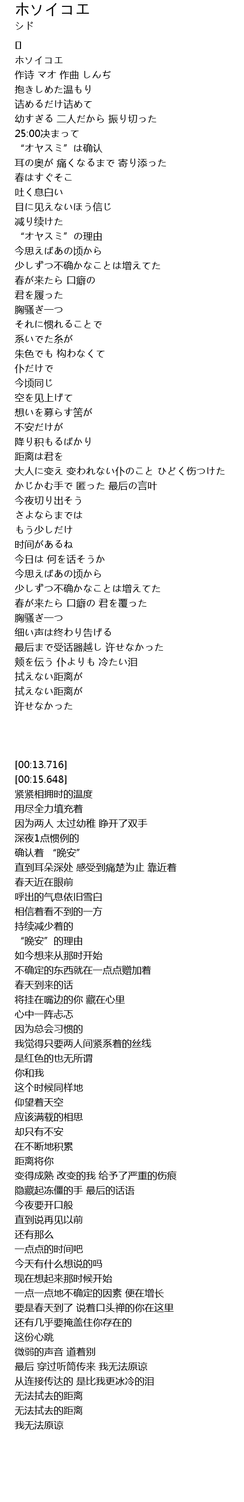 | [00:13.716] | ホソイコエ |
