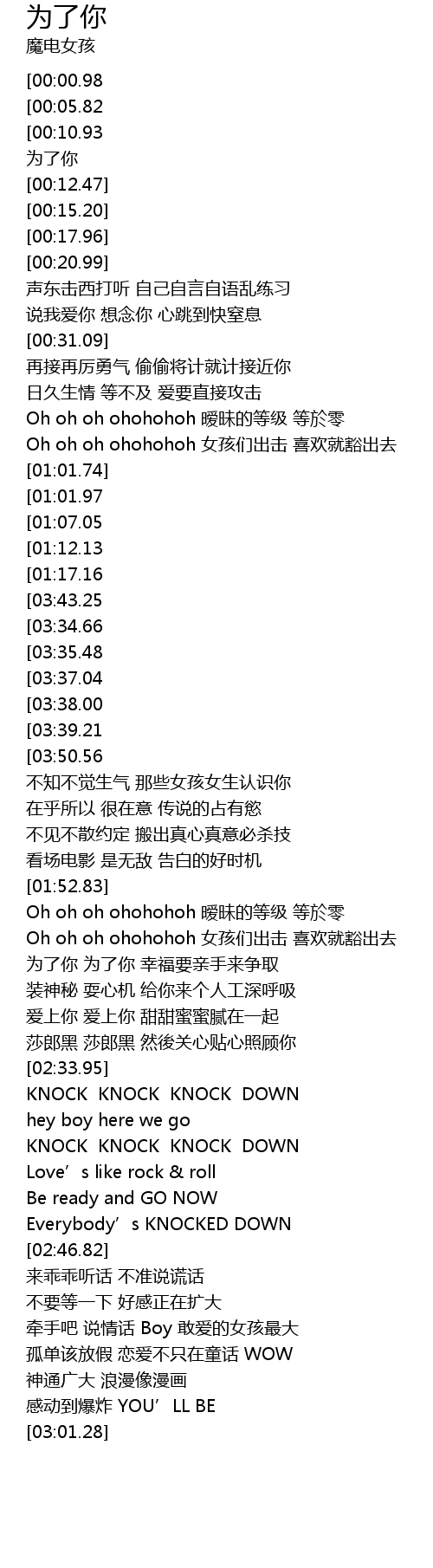 | [03:02.19][00:00.98] | 为了你 为了你 |