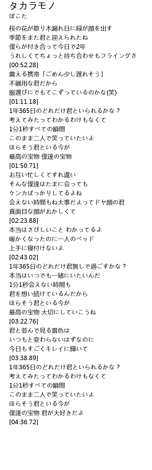 | [01:42.17] | 最高の宝物 僕達の宝物 |