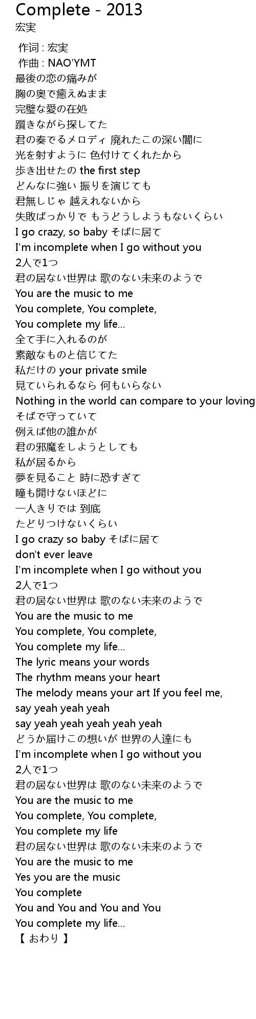 | [01:15.82] | I go crazy, so baby そばに居て |