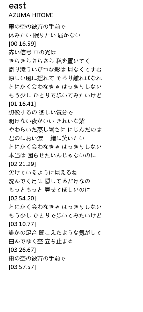 | [03:21.49] | 白んでゆく空 立ち止まる |