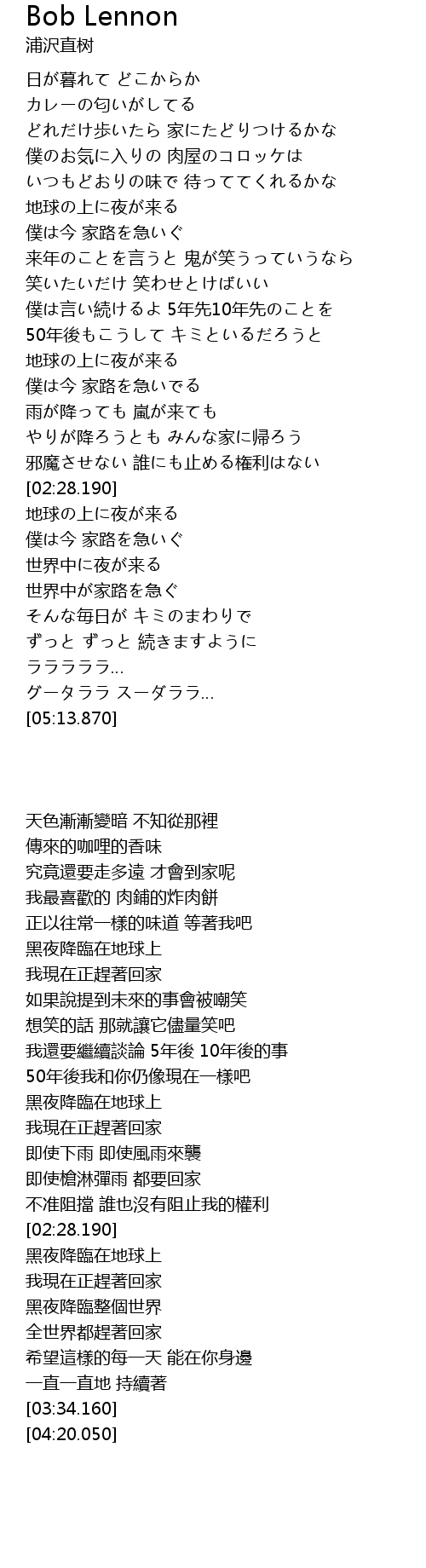 | [02:07.930] | やりが降ろうとも みんな家に帰ろう |