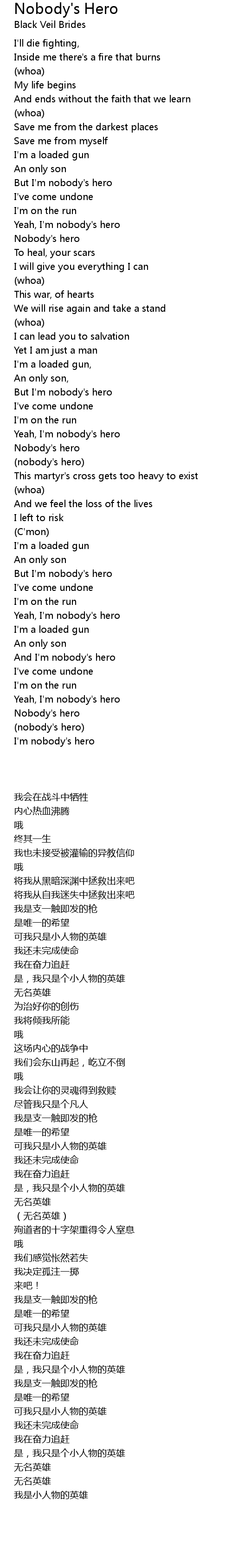 And I'm nobody's hero |