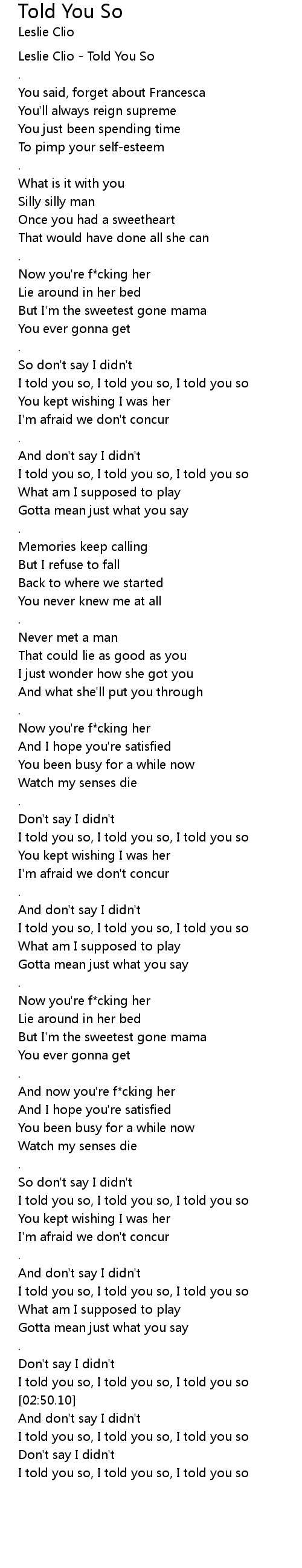 Leslie Clio - Told You So |