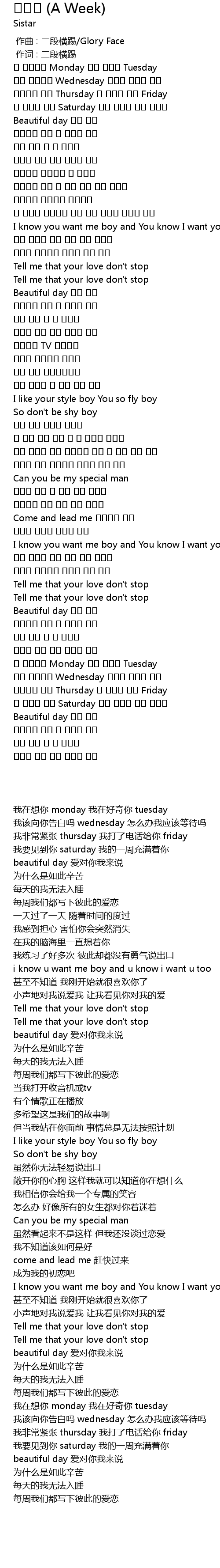 | [02:54.220] | 네 생각나는 Monday 왠지 궁금한 Tuesday |