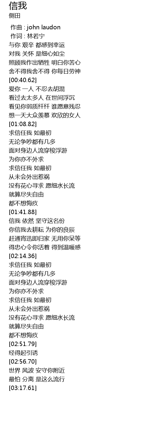 | [01:46.53] | 信我 依然 坚守这名份 |