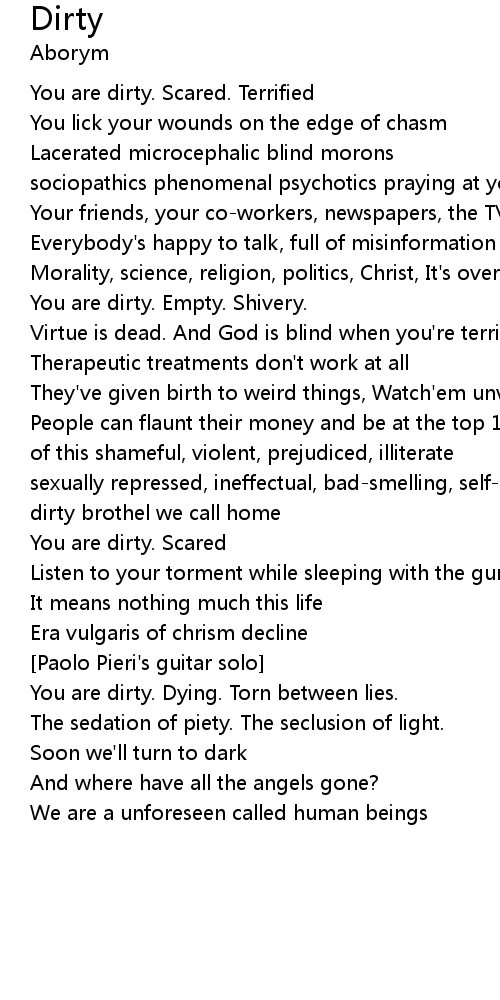 | You are dirty. Dying. Torn between lies. | |