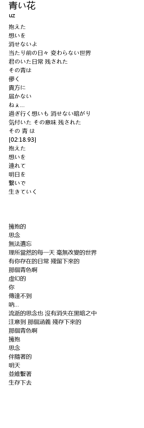 | [00:43.72] | 当たり前の日々 変わらない世界 |
