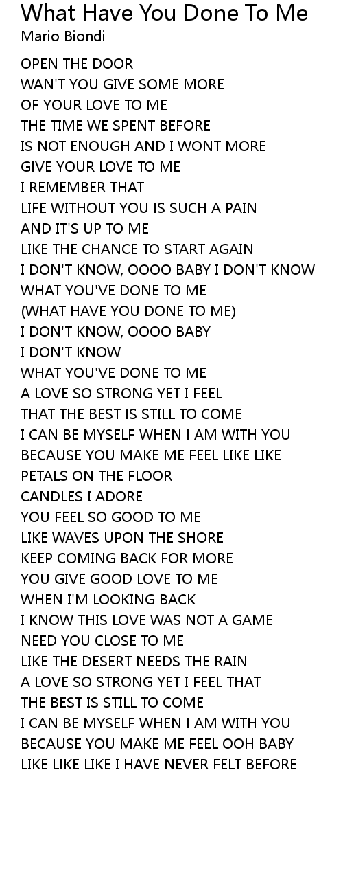 (WHAT HAVE YOU DONE TO ME) |