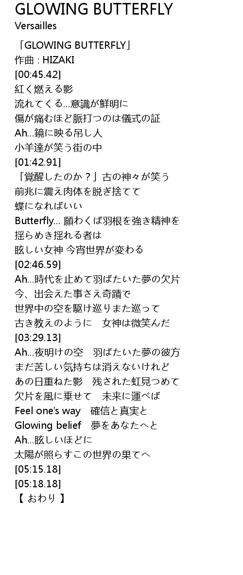 | [00:05.42] | 「GLOWING BUTTERFLY」 |