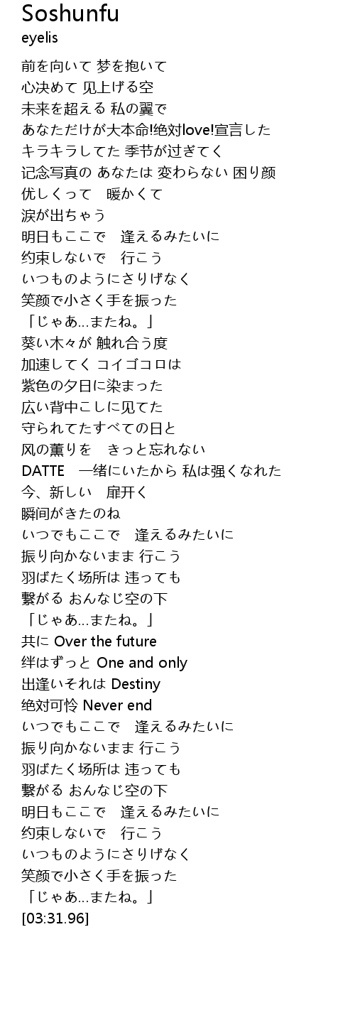 | [03:03.24] | 繋がる おんなじ空の下 |