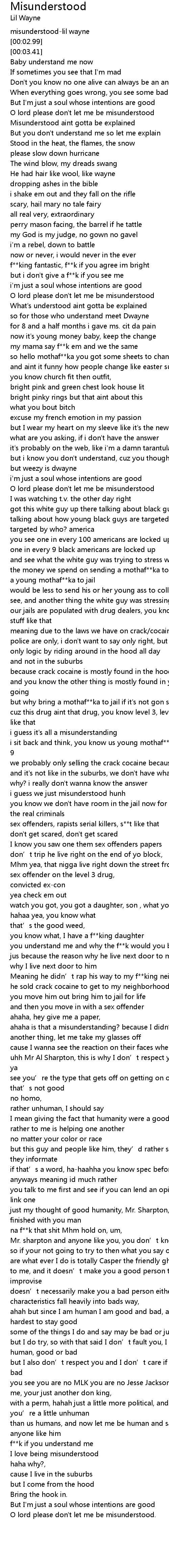 | [00:00.70] | misunderstood-lil wayne |