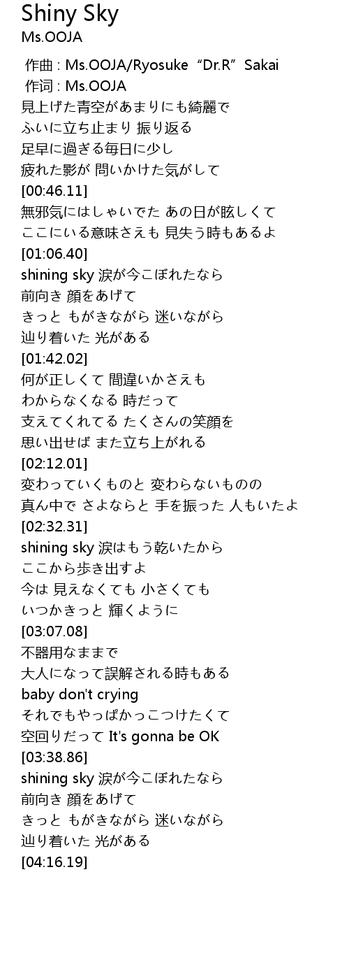 | [03:41.42] | shining sky 涙が今こぼれたなら |