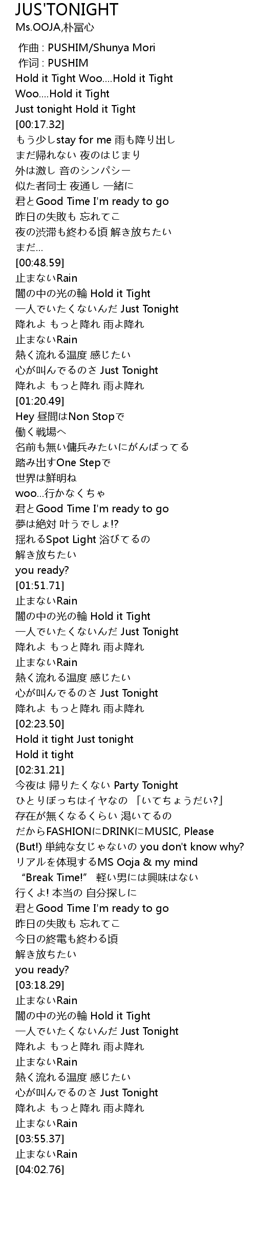 | [00:05.61] | Hold it Tight Woo....Hold it Tight |