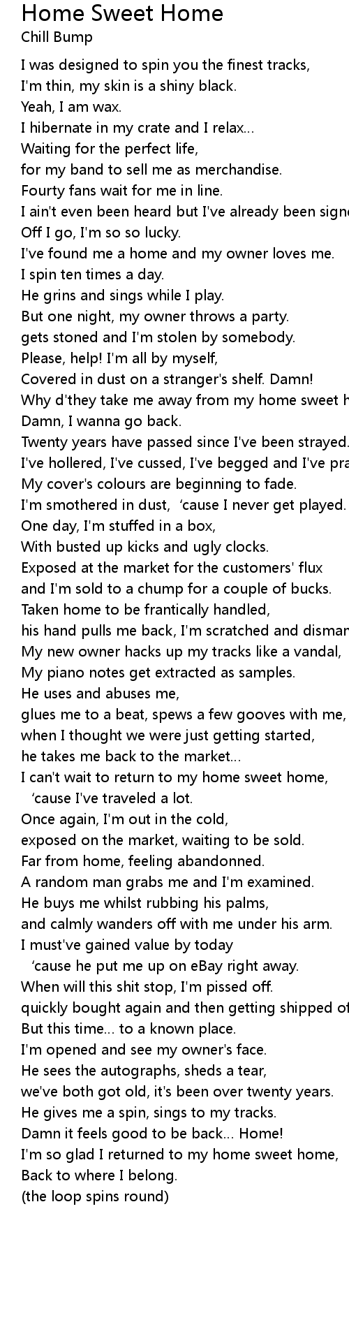 | glues me to a beat, spews a few gooves with me, two or three. | |