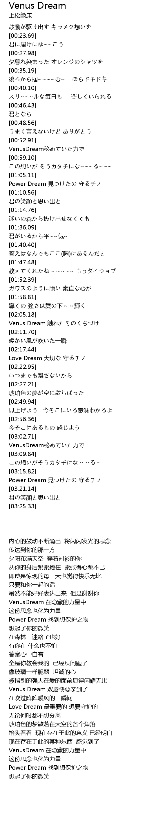 | [02:07.43] | Venus Dream 触れたそのくちづけ |