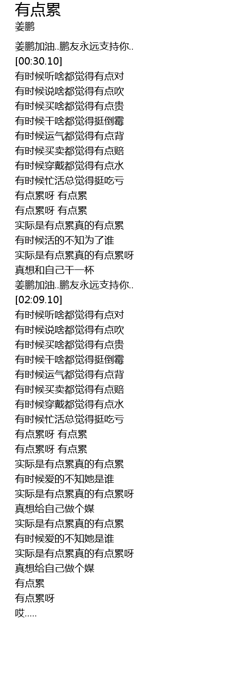 | [01:38.53] | 实际是有点累真的有点累呀 |