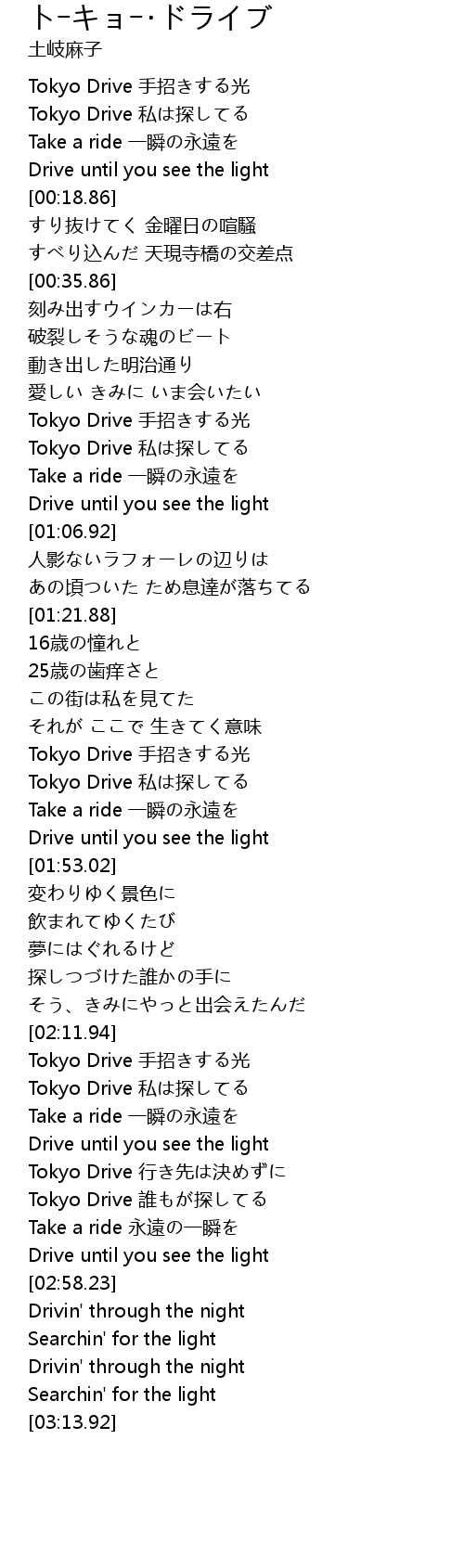 | [00:07.14] | Tokyo Drive 私は探してる |