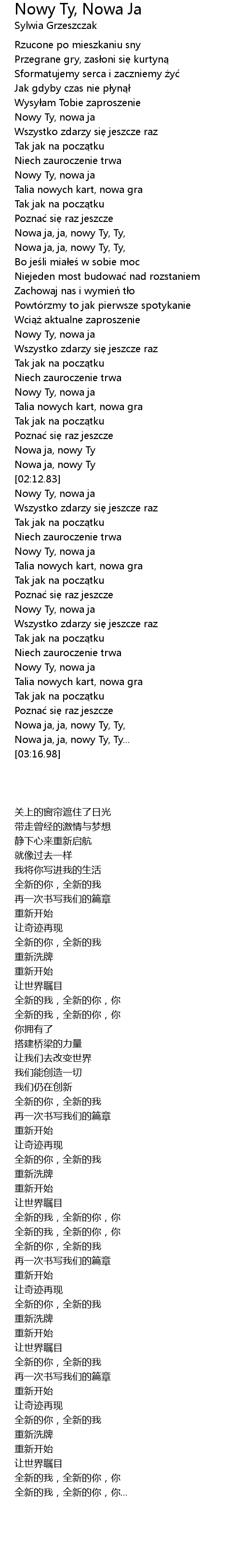 | [00:57.61] | Nowa ja, ja, nowy Ty, Ty, |