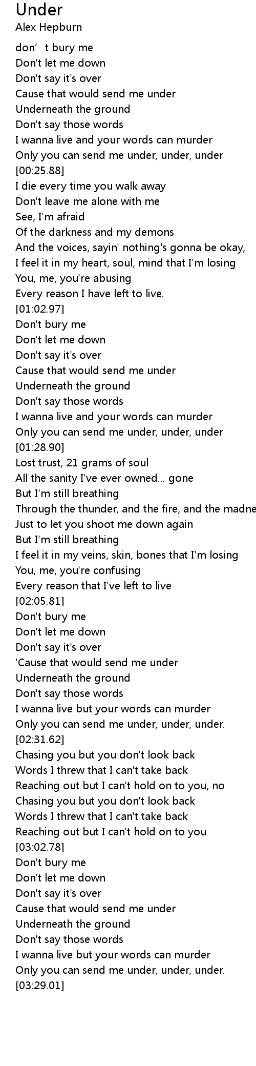 | [03:03.34] | Don't bury me |