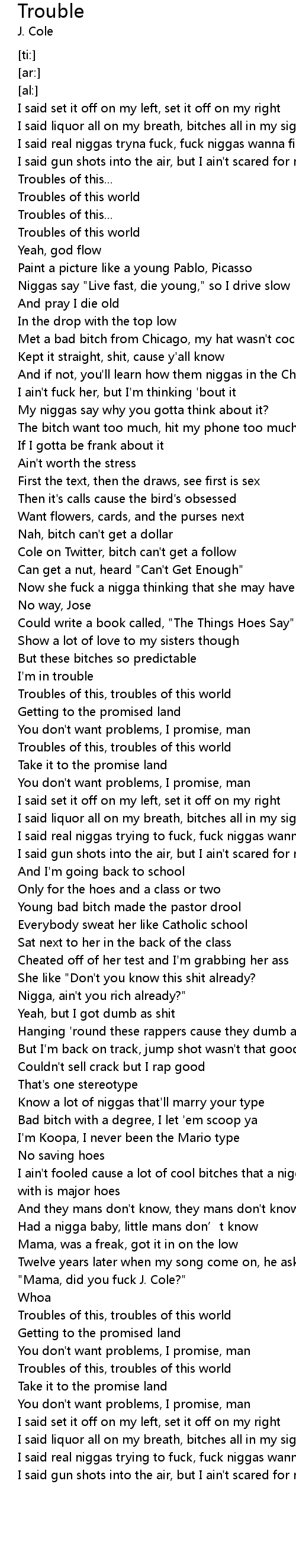 | [03:00.33] | " Mama, did you fuck J. Cole?" |