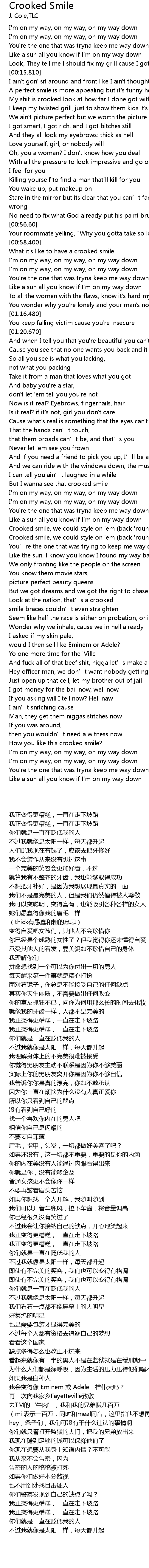 | [00:59.180] | What it' s like to have a crooked smile |