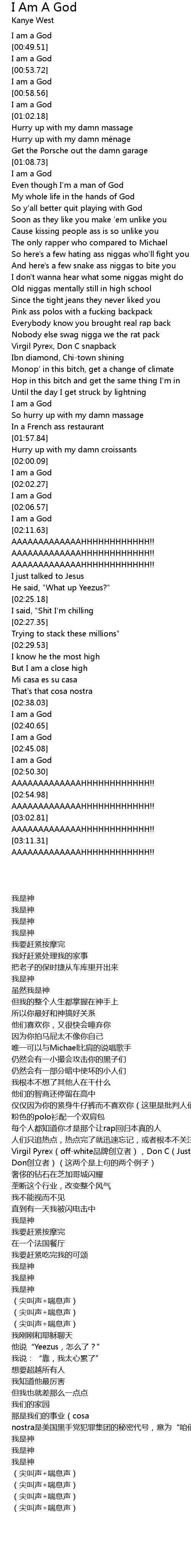 | [00:48.77] | I am a God |