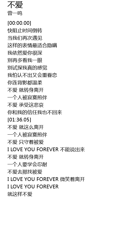 | [02:34.82] | I LOVE YOU FOREVER 微笑着离开 |