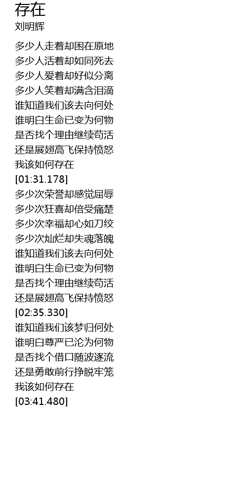 | [01:11.939] | 我该如何存在 |