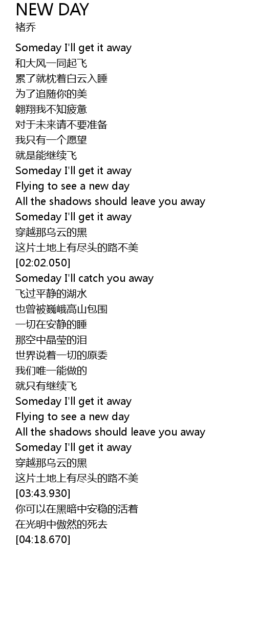 | [01:31.410] | Flying to see a new day |