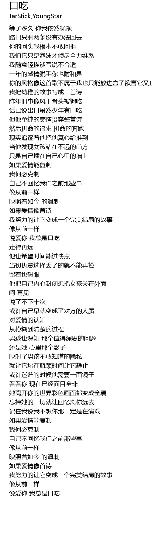 | [00:45.53] | 话已说出口虽然少年有口吃 |