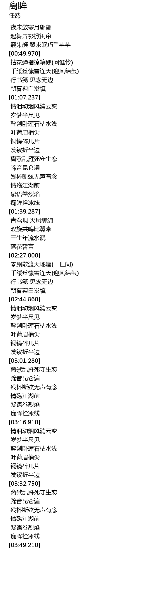 | [03:33.730] | 离歌乱雁死守生恋 |