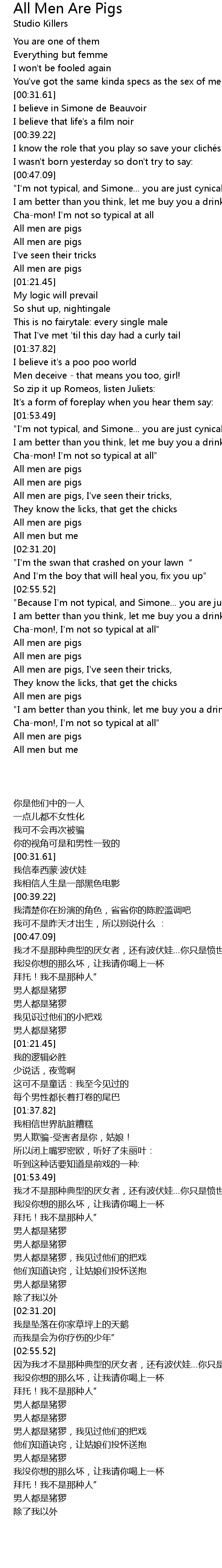 | [02:16.50] | All men are pigs, I've seen their tricks, |
