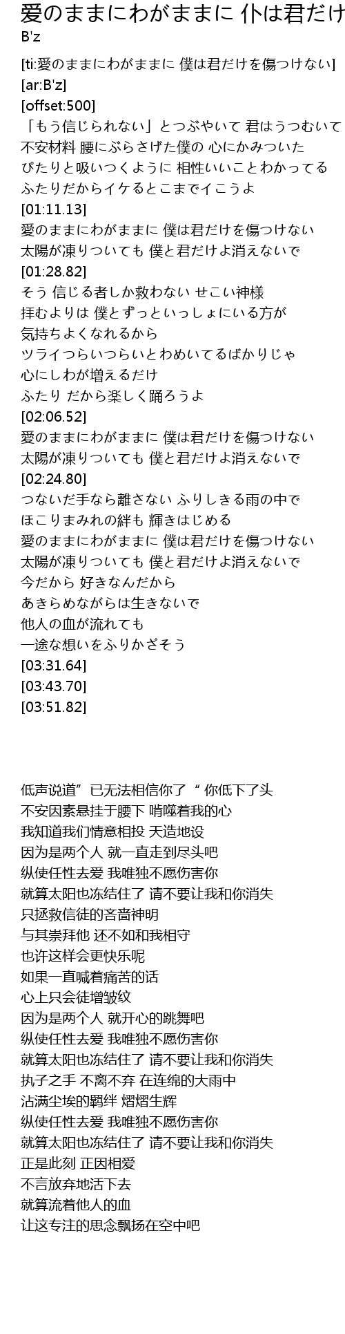 | [ti:愛のままにわがままに 僕は君だけを傷つけない] | |