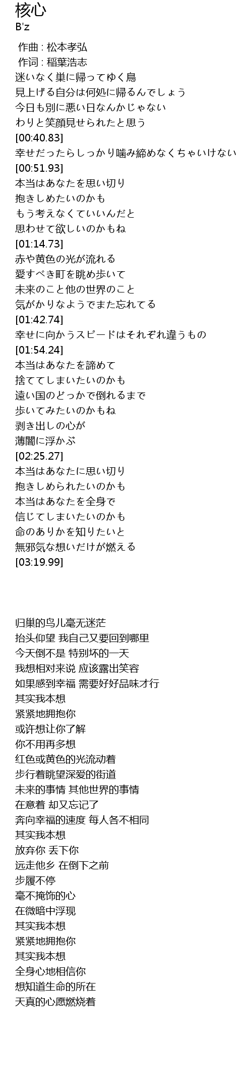 | [00:01.00] | 作词 : 稲葉浩志 |