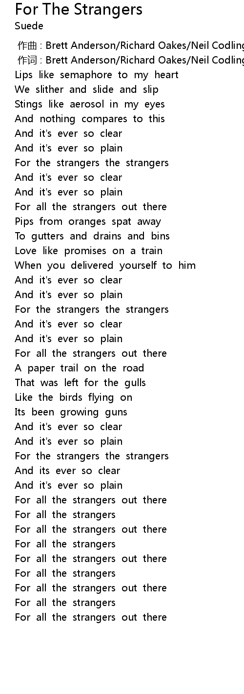 | [00:01.00] | 作词 : Brett Anderson/Richard Oakes/Neil Codling |