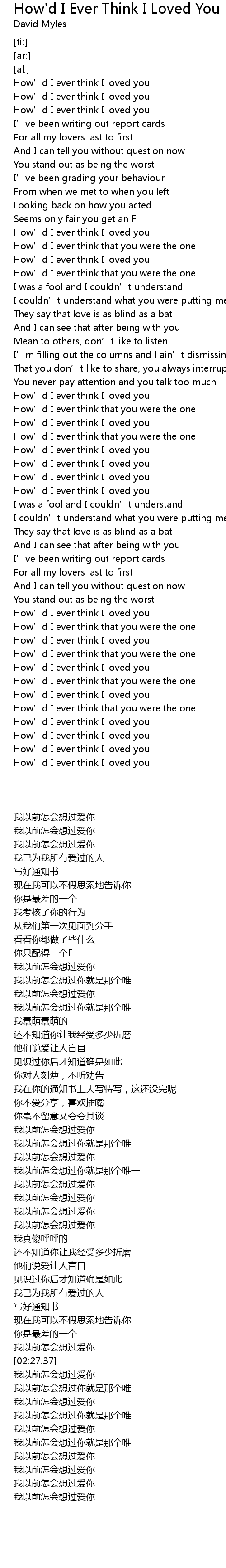 | [02:38.06] | How' d I ever think I loved you |