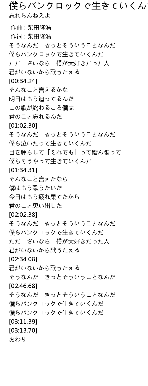 | [03:03.74] | 僕らパンクロックで生きていくんだ |