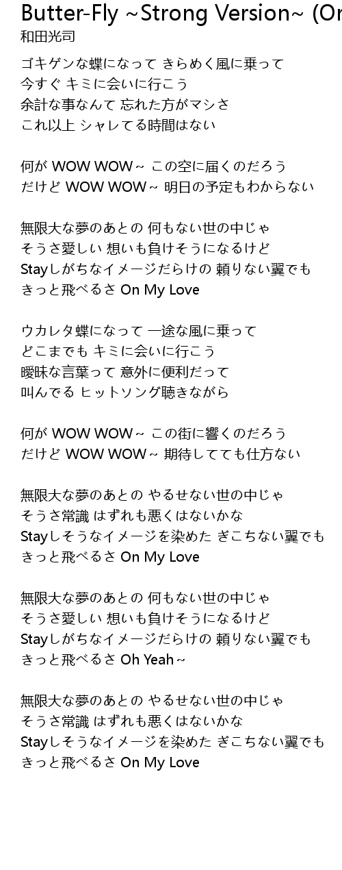 | Song | Butter-Fly ~Strong Version~ (Original Karaoke) |